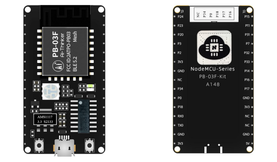 The PB-03F-Kit Development Board is a compact and efficient platform designed for the PB-03F Bluetooth module. Powered by the PHY6252 SoC, it delivers reliable Bluetooth 5.2 connectivity along with a high-performance, low-power 32-bit processor.