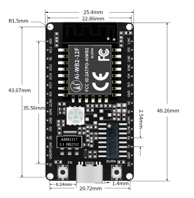 Perfect for IoT, smart home systems, wearable devices, and embedded projects, the Ai-WB2-12F-Kit provides a reliable and flexible platform for developers to build connected solutions.