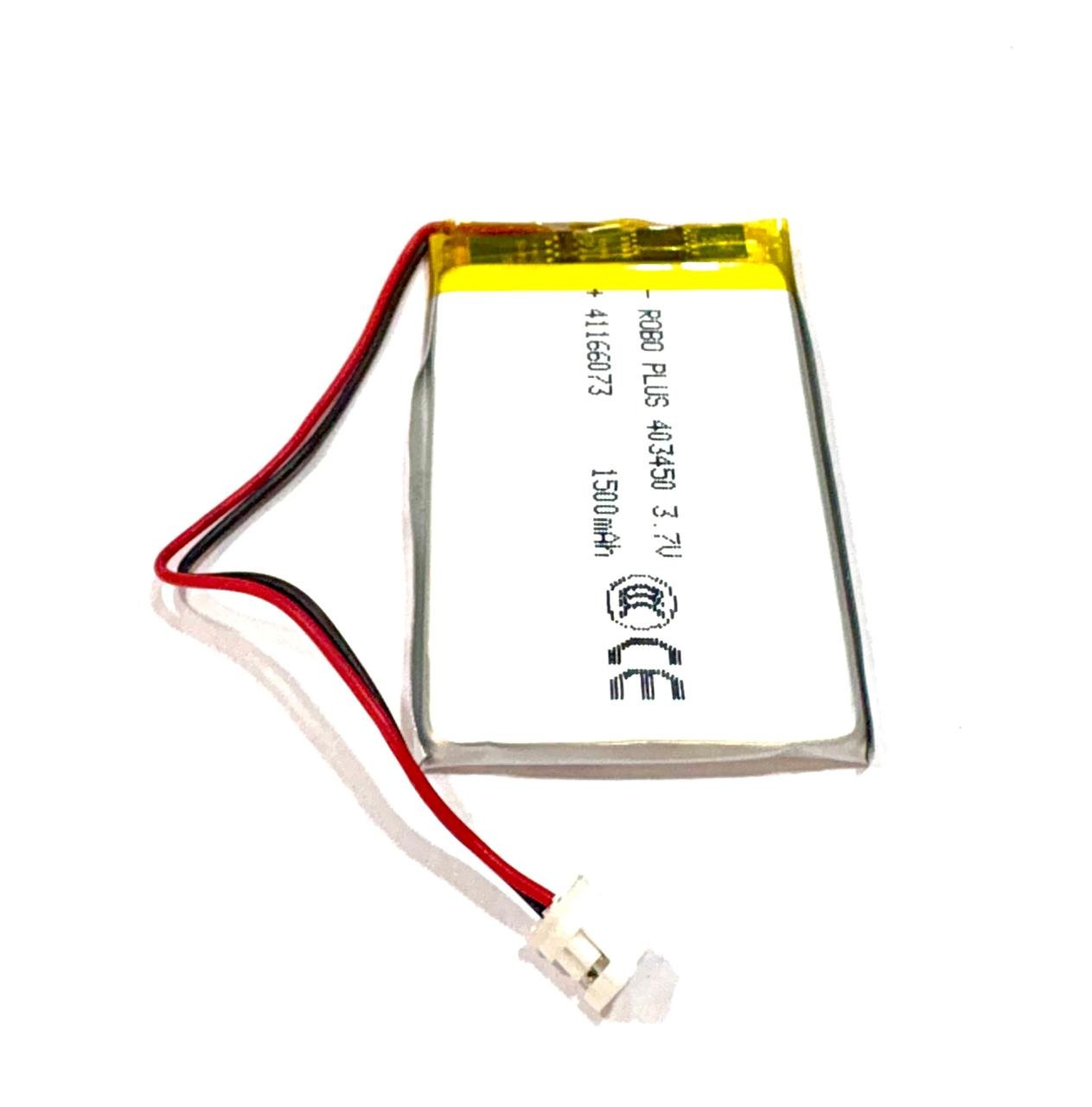 ROBO PLUS 403450 1500mAh 3.7V Lithium Polymer (LiPo) rechargeable battery is designed to provide reliable and efficient power for a range of compact electronic applications. With a capacity of 400mAh, this lightweight battery is an ideal choice for wearables, remote devices, and various consumer electronics. Built with advanced safety features, it ensures long-lasting performance and reliability.